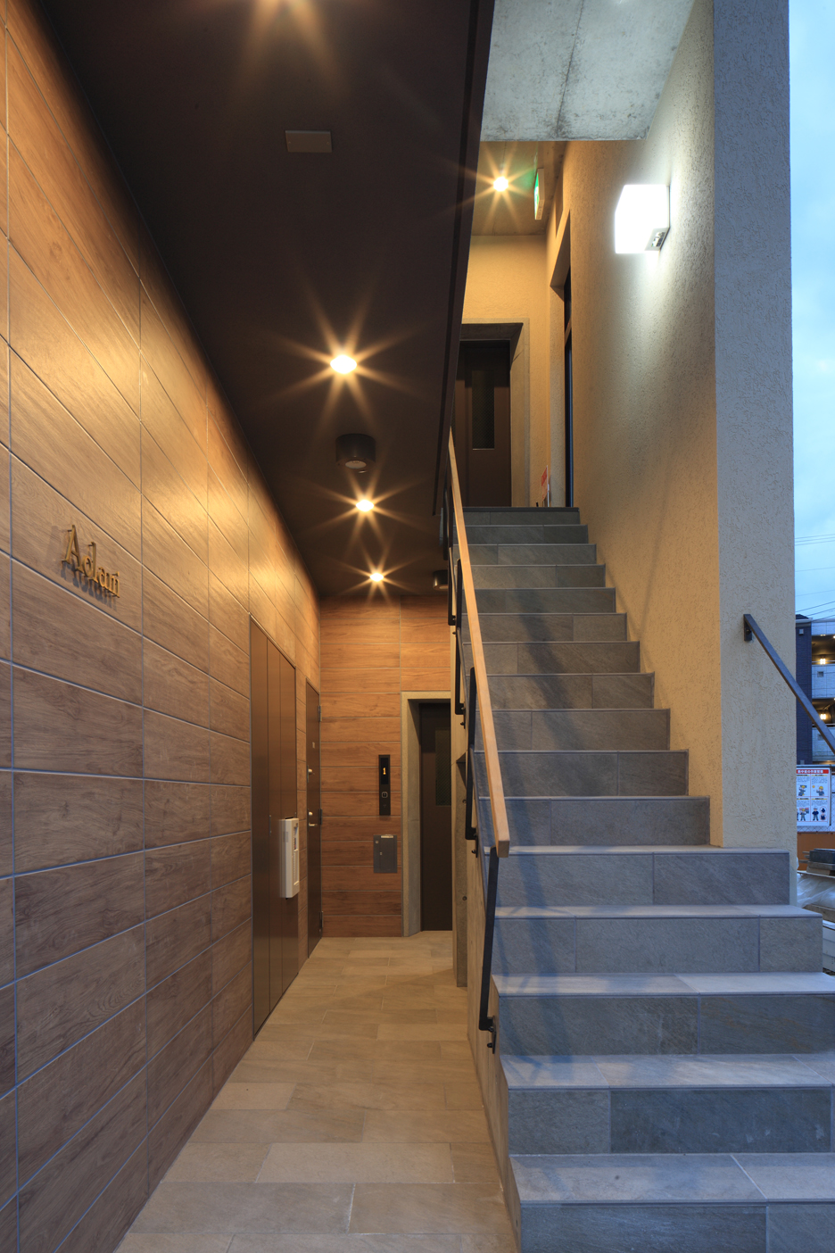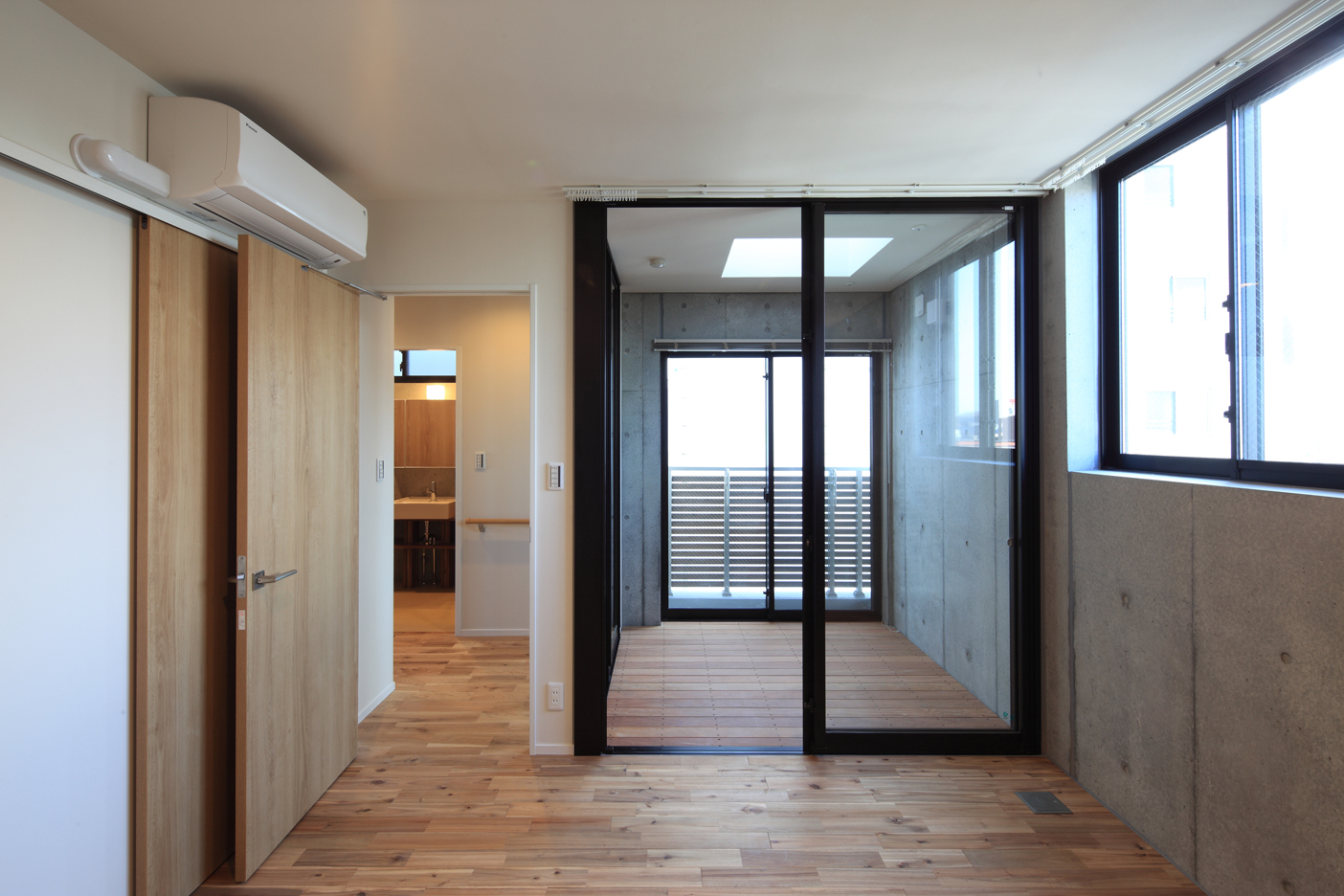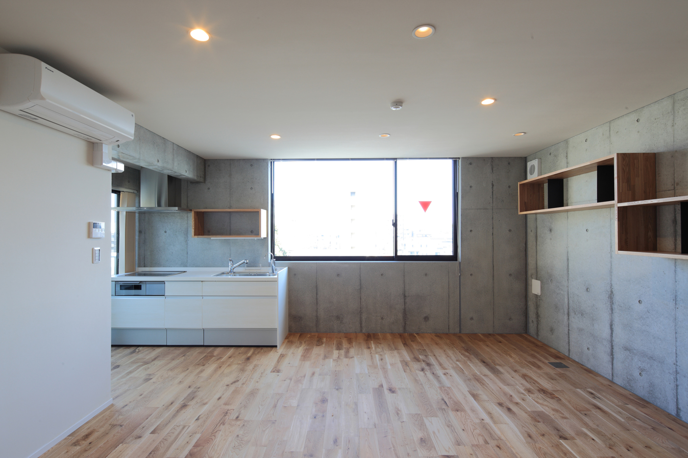 オーナー住居+ワンルーム4戸+1,2階店舗。外断熱で内部打放し