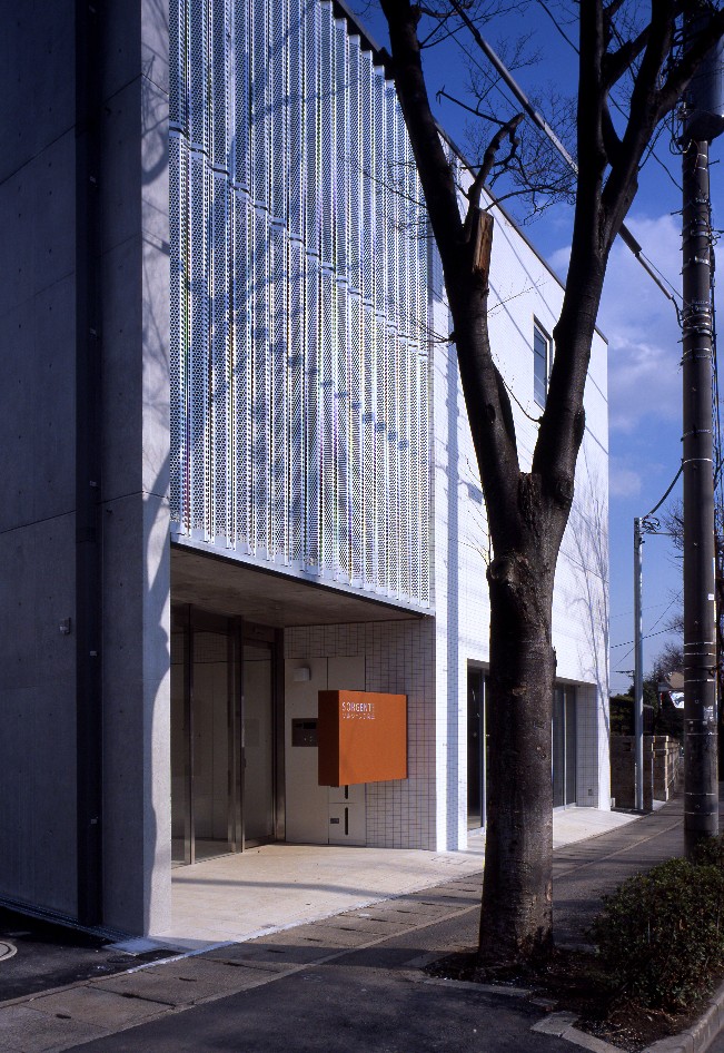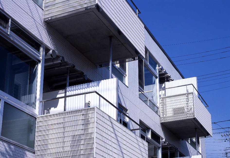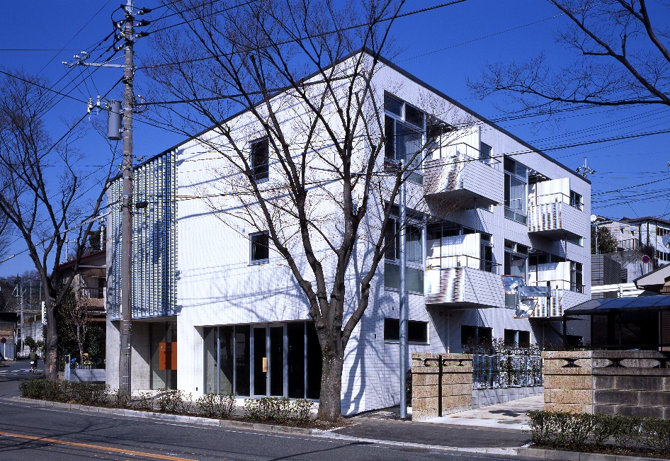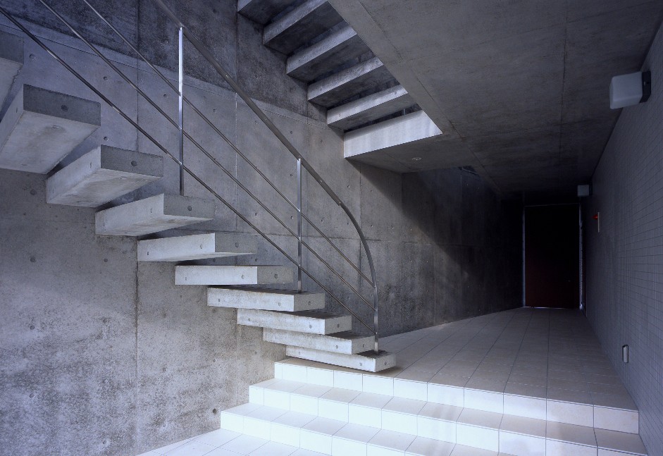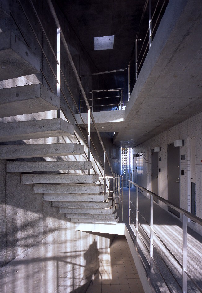 敷地形状に合わせた台形プランと印象的な共用スペース