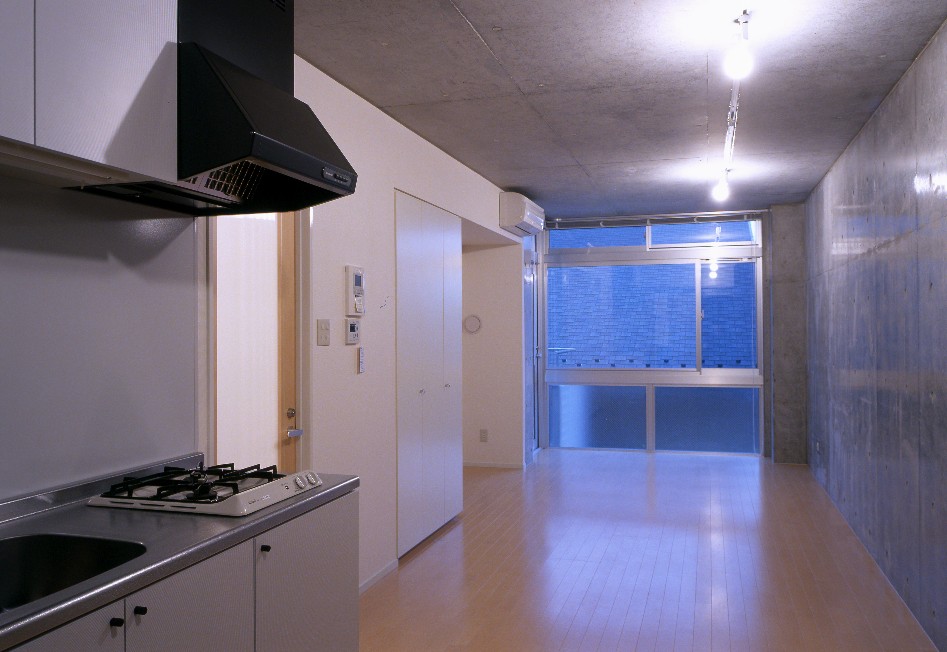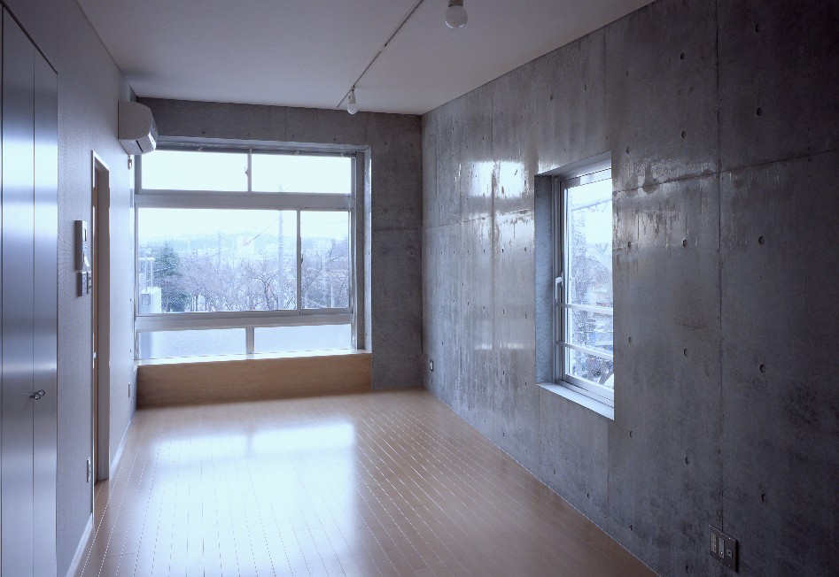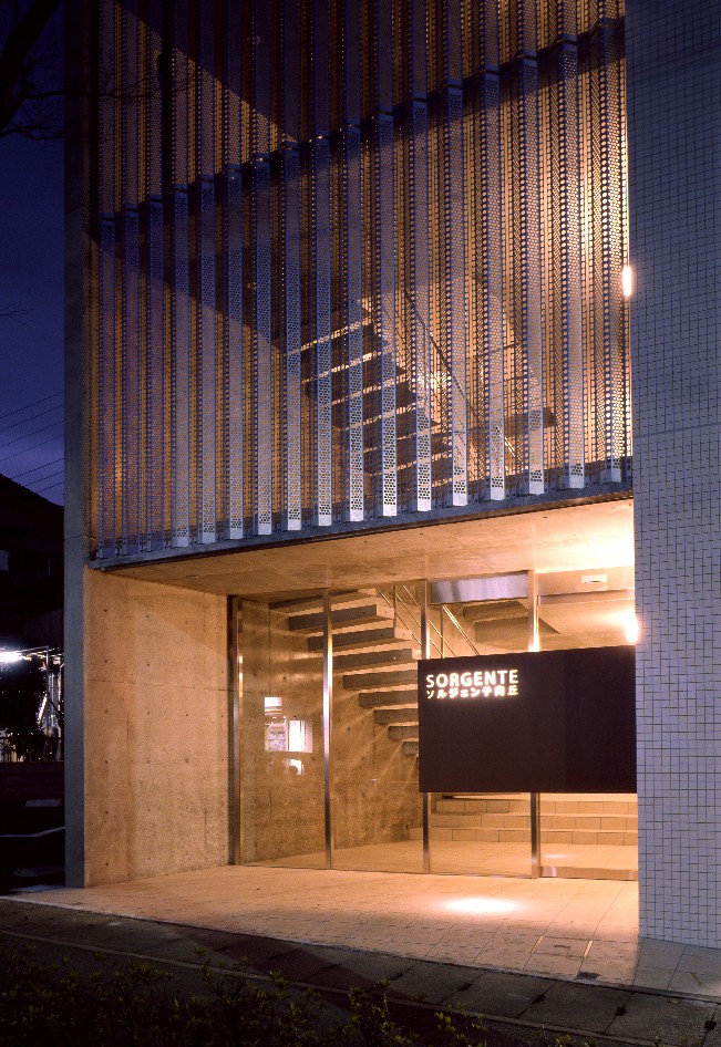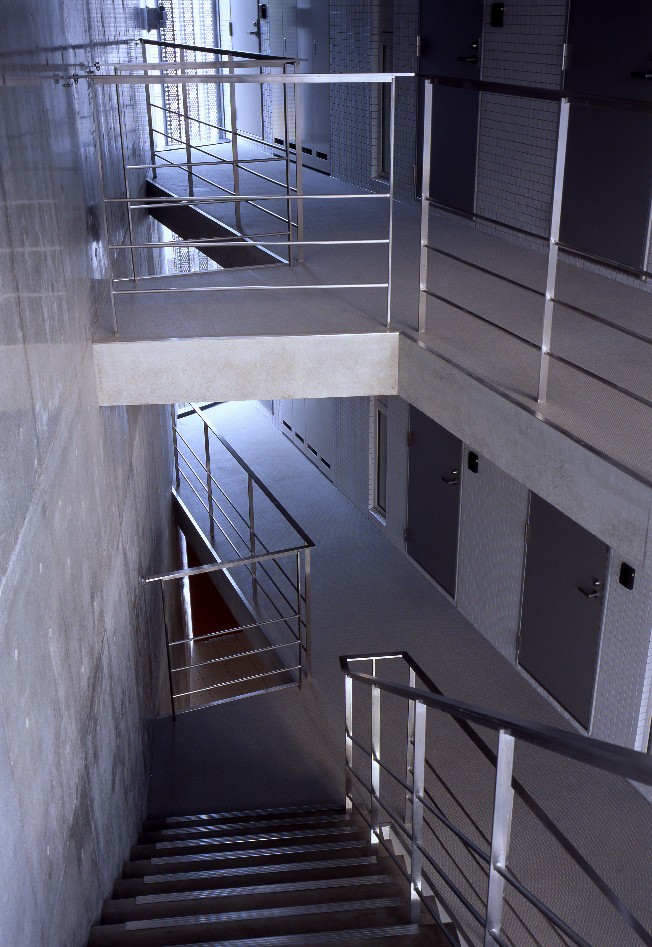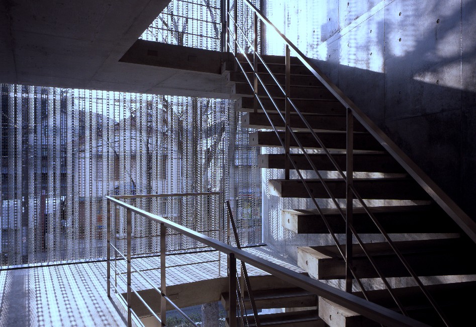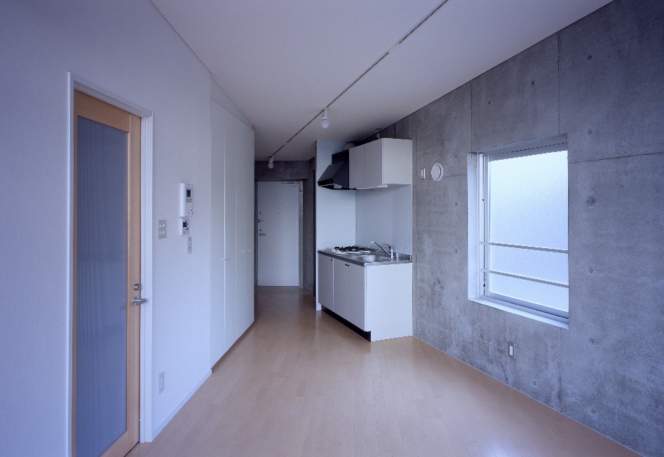 敷地形状に合わせた台形プランと印象的な共用スペース
